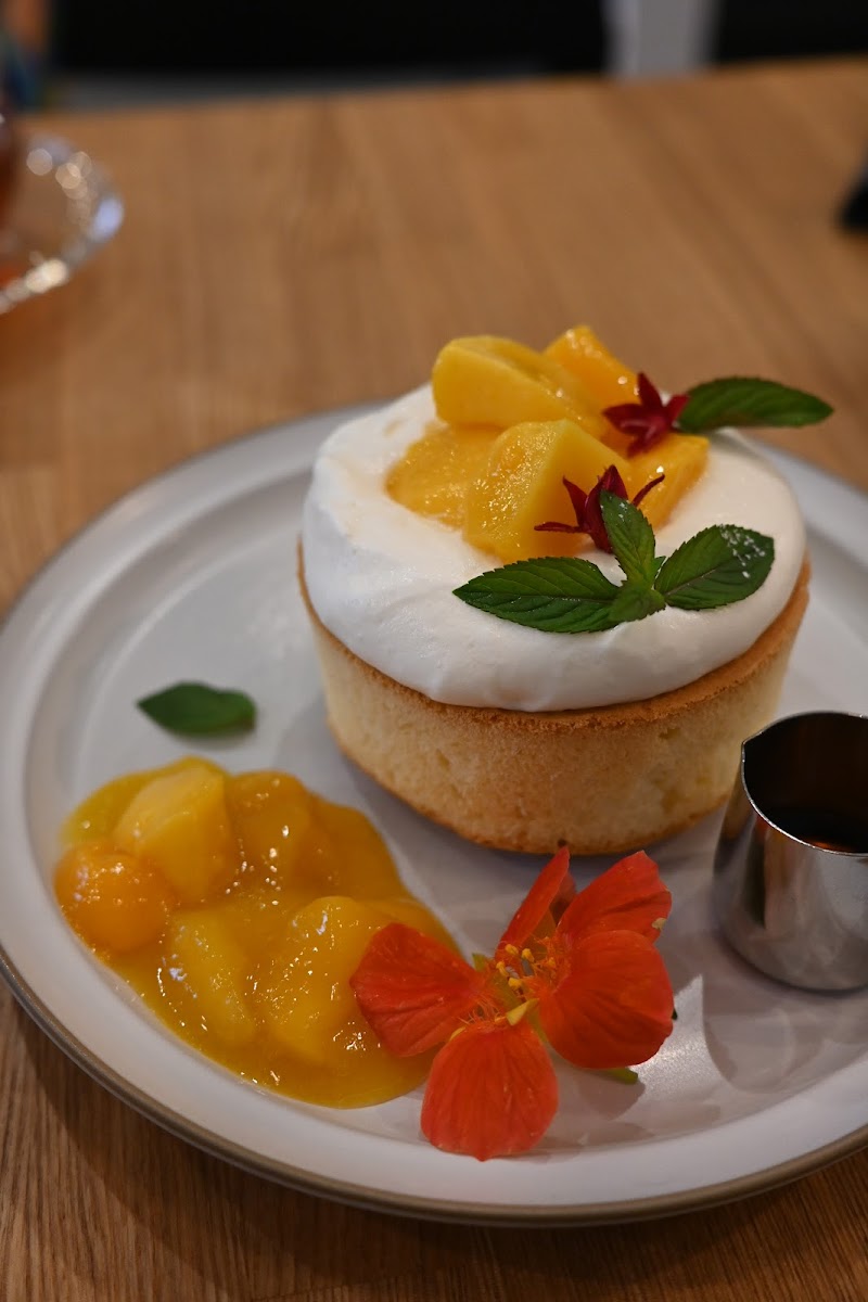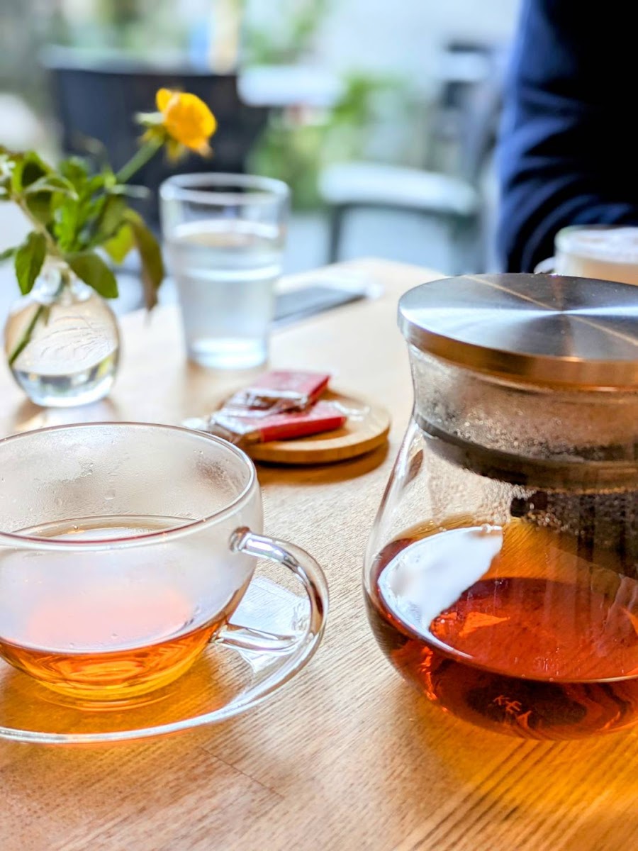 Now, let's delve into the culinary delights that await you. The menu is thoughtfully curated, featuring everything from delectable sweet treats to fragrant herbal teas. One highlight you simply cannot miss is the beautifully decorated floral souffle cake, where edible flowers elevate the dish both visually and in flavor. And if you’re in the mood for a refreshing drink, the iced café latte is served in generous double-walled cups, ensuring satisfaction with every sip. Customers rave about the gobo tea and cinnamon herbal tea, which pair exquisitely with their fluffy pancakes—truly a match made in café heaven!